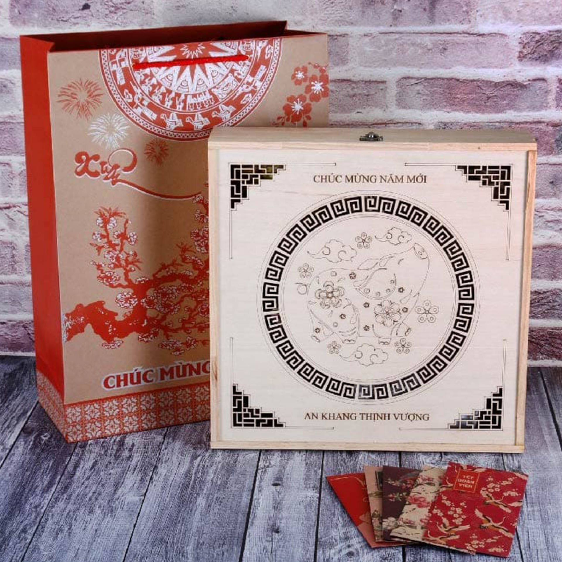 So với những chất liệu giấy, tui nilon đại trà trên thị trường, chất liệu gỗ mộc mạc sang trọng mang đúng không khí truyền thống như trung thu và Tết gửi gắm, lại là sự lựa chọn hoàn hảo. Bên cạnh đó việc tạo hình, điêu khắc trên hộp gỗ dễ dàng hơn bao giờ hết.